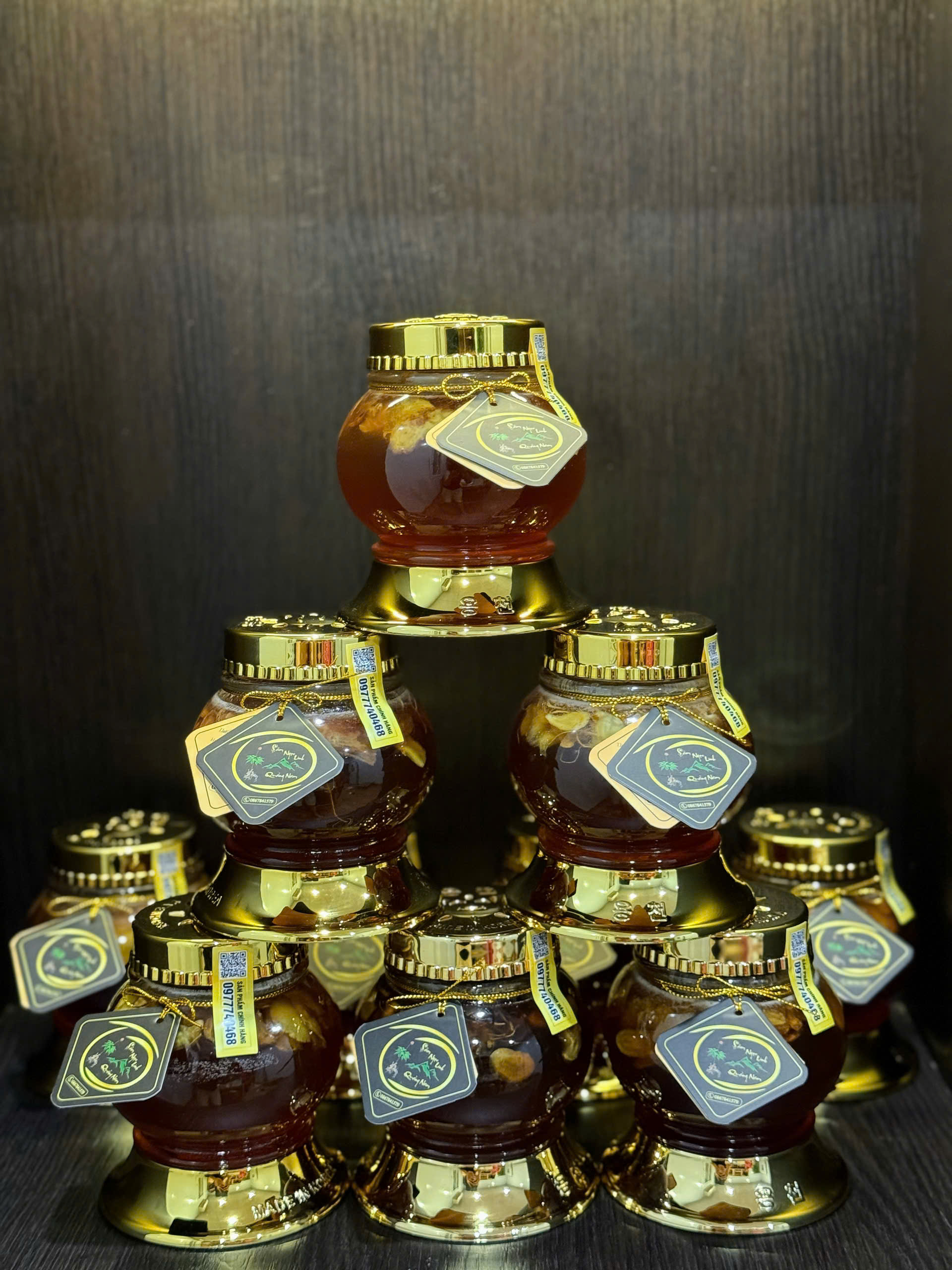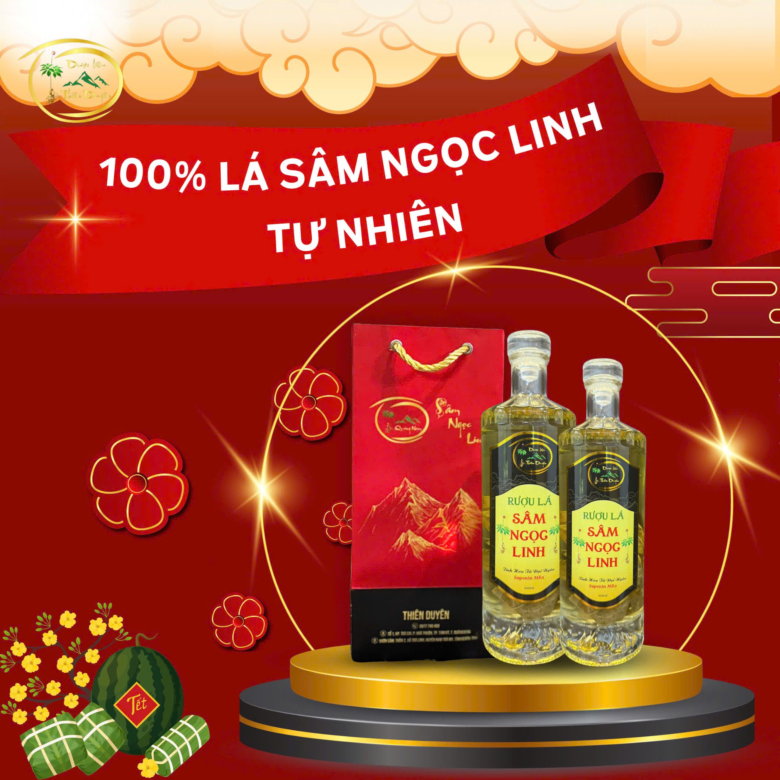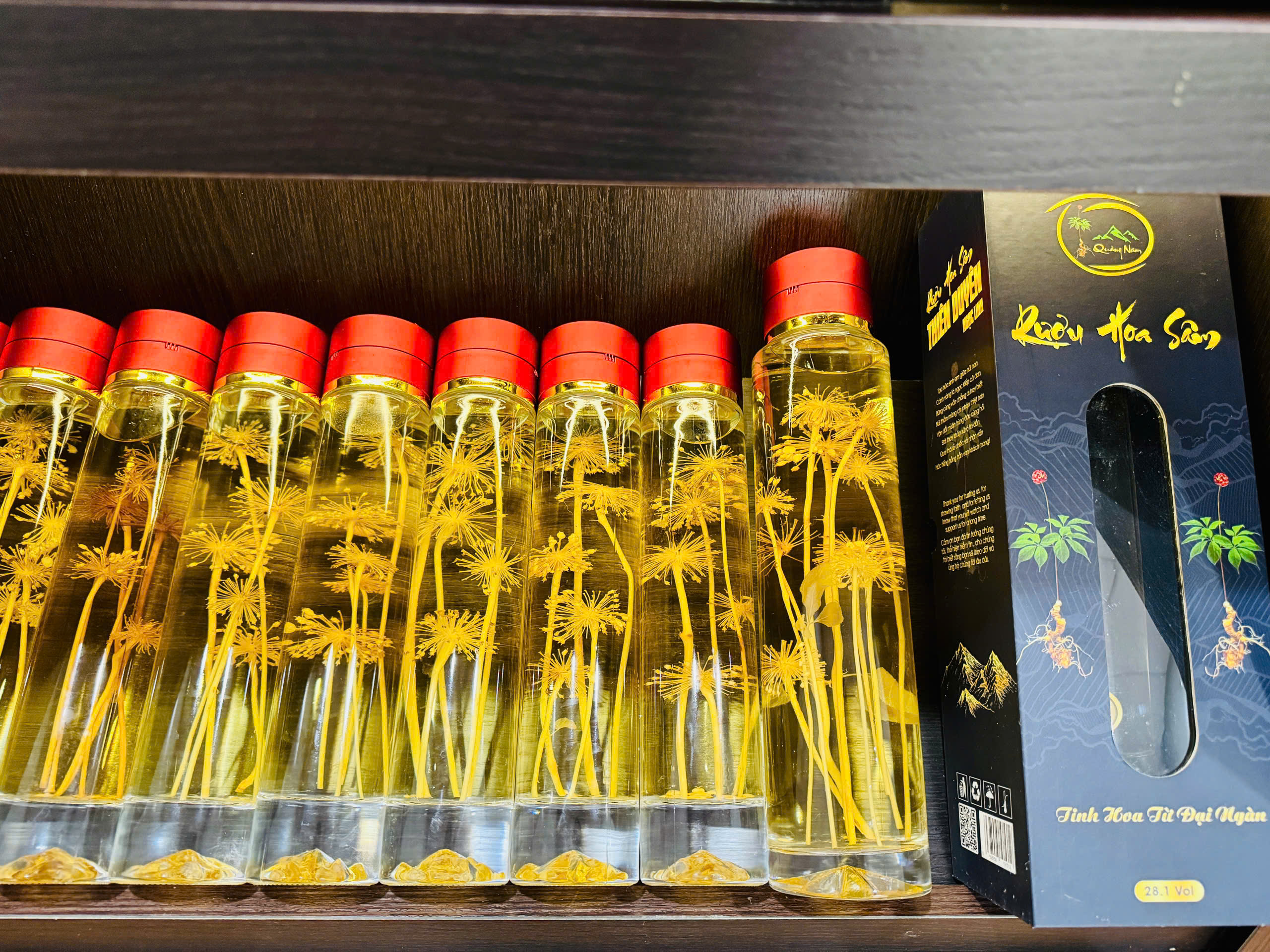 | Thành phần | Củ Sâm Ngọc Linh ngâm mật và lá Sâm Ngọc Linh ngâm rượu |