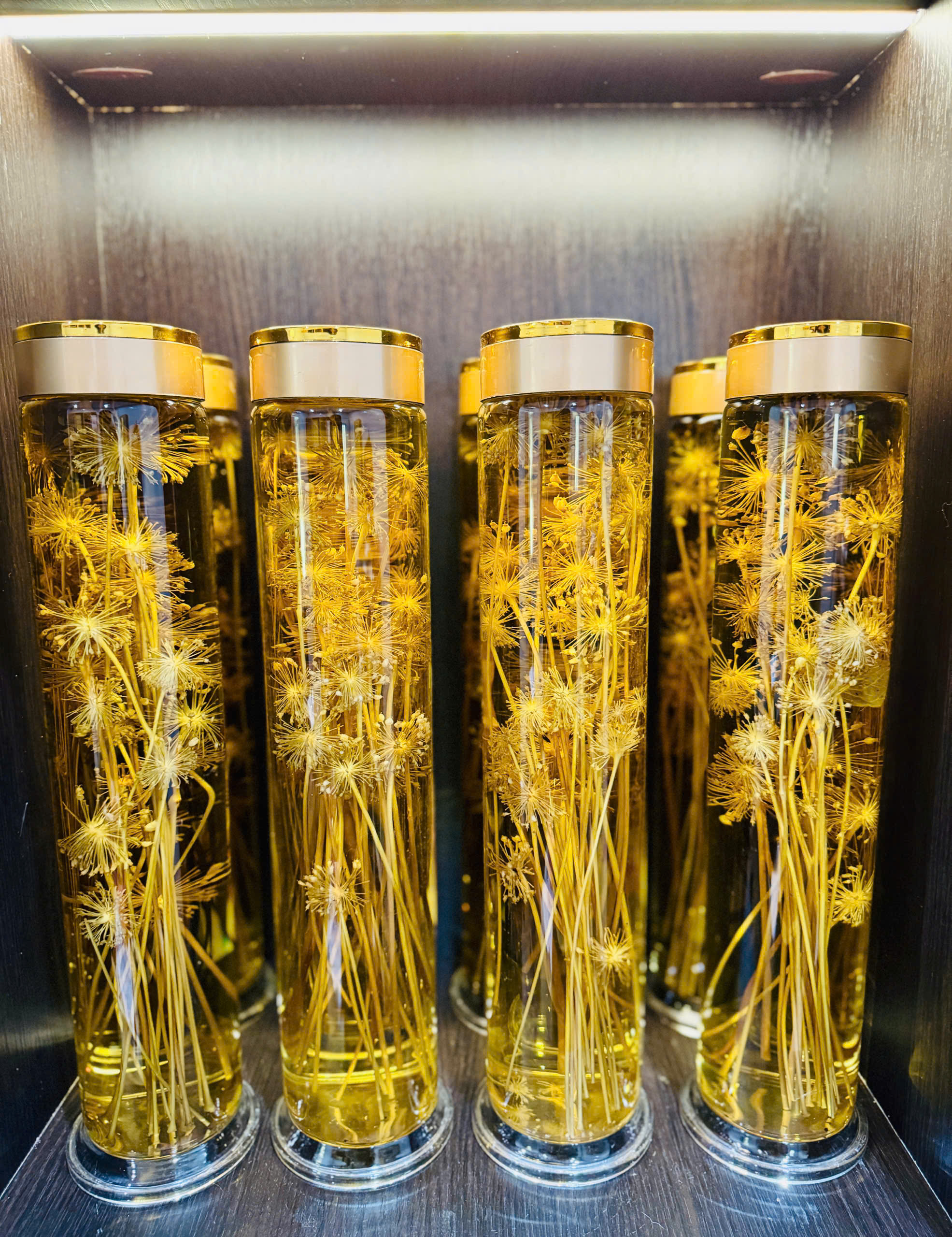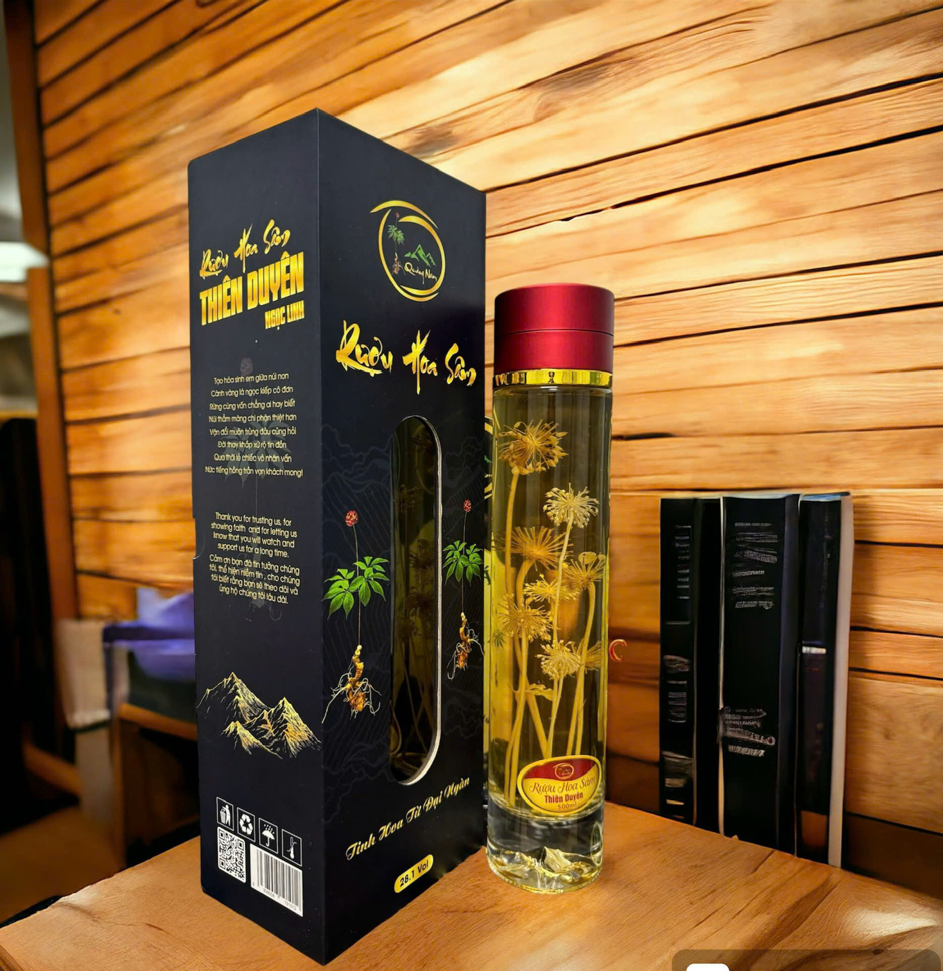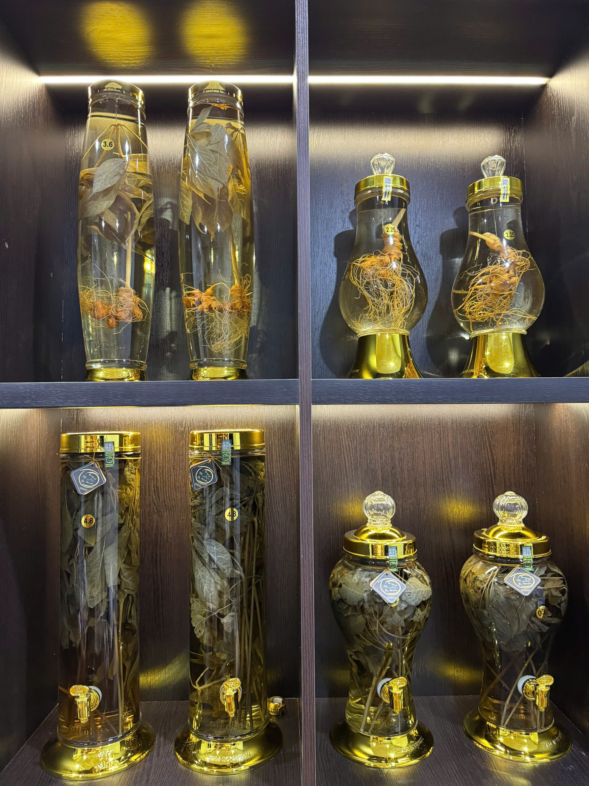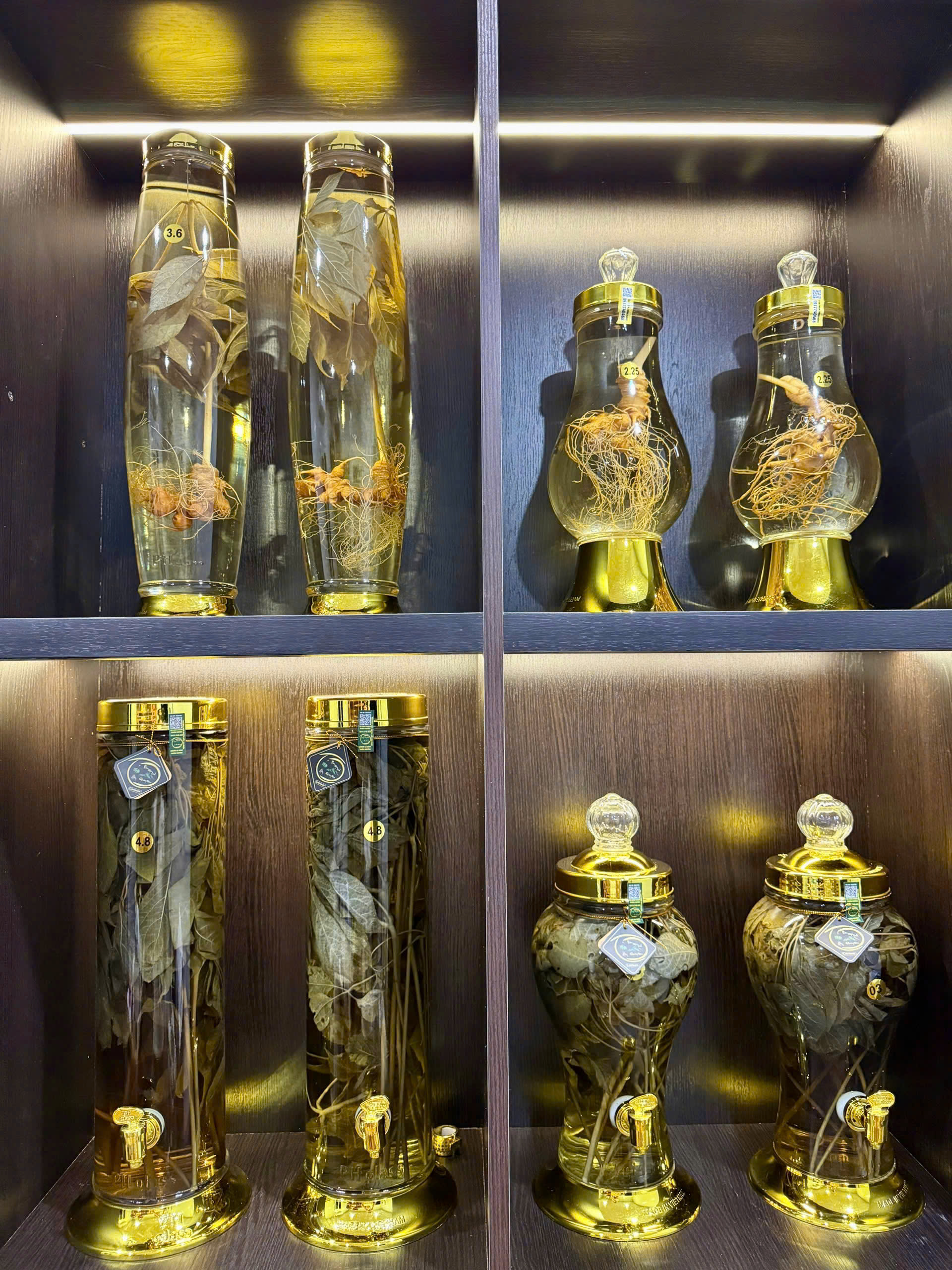 | Thành phần | Củ Sâm Ngọc Linh ngâm mật và lá Sâm Ngọc Linh ngâm rượu |